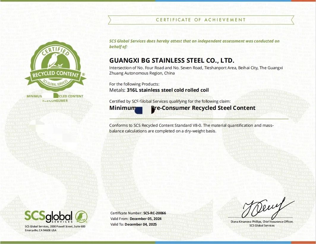 近日,北部灣港集團(tuán)旗下北港新材料公司的不銹鋼產(chǎn)品成功通過(guò)全球知名認(rèn)證機(jī)構(gòu)——美國(guó)SCS Global Services公司的SCS翠鳥(niǎo)認(rèn)證。這是北港新材料繼年初通過(guò)RCS認(rèn)證(全球回收標(biāo)準(zhǔn))后取得的又一國(guó)際認(rèn)證,標(biāo)志著北部灣港集團(tuán)在踐行低碳綠色發(fā)展理念上取得了又一重要進(jìn)展。