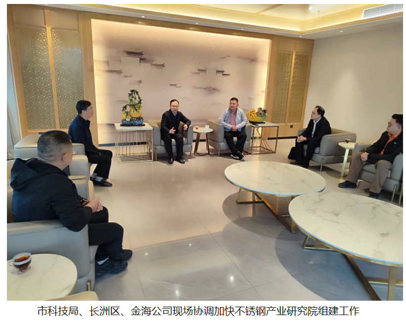 在現(xiàn)場(chǎng)協(xié)調(diào)過(guò)程中,徐軍局長(zhǎng)與長(zhǎng)洲區(qū)副區(qū)長(zhǎng)陀藝、金海公司總裁王文輝交流了組建不銹鋼產(chǎn)業(yè)研究院的意見(jiàn),在場(chǎng)地、研究院架構(gòu)、研發(fā)團(tuán)隊(duì)、研發(fā)檢測(cè)設(shè)施配置等方面取得共識(shí),組建方同意盡快組成多方參與的工作專(zhuān)班,加快推進(jìn)新型研發(fā)機(jī)構(gòu)落地,開(kāi)展短流程不銹鋼生產(chǎn)工藝、節(jié)能技術(shù)以及新產(chǎn)品研究,為梧州市再生不銹鋼產(chǎn)業(yè)高質(zhì)量發(fā)展提供技術(shù)支撐。